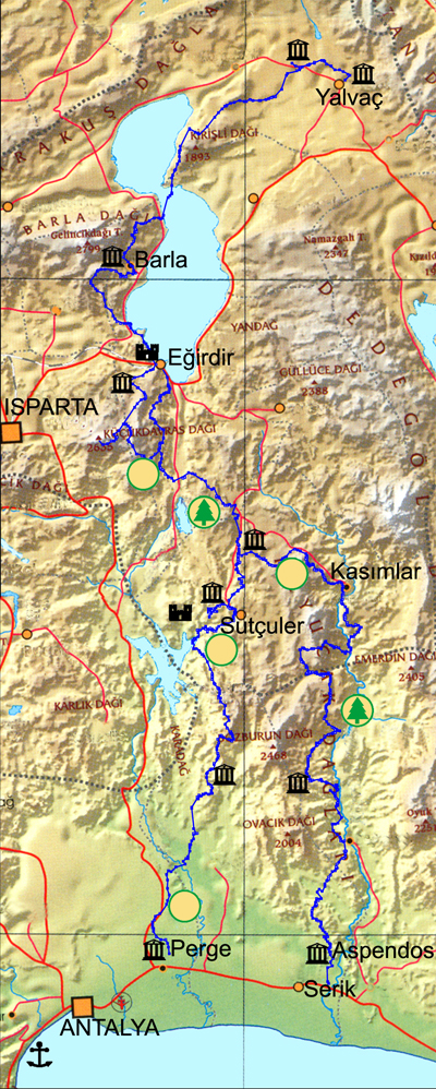 Antalya Aksu Perge ya da Aspendos’tan başlanabilen St.Paul Yolu, Antalya sınırları içerisinde 100 km. gittikten sonra, Isparta ili sınırları içerisinde devam eder. Bu iki farklı çıkış yolu, Sütçüler, Sağrak Köyü, Adada Antik Kentinde birleşer ve Yalvaç ilçesinde sona erer.