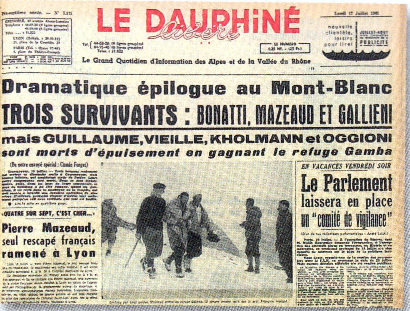 1961’de Mont Blanc‘ta Freney sırtında arkadaşları ile berber bir fırtınaya yakalandılar. Walter Bonotti , Roberto Gallieni ve Pierre Mazeaud hayatta kalmayı başardı. Birlikte oldukları 4 diğer dağcı öldü. Bu olay nedeniyle de Bonotti çok suçlandı. Diğer dağcılara yardım etmediği öne sürüldü. Ancak bu gerçek değildi. Ölenler Fransız olmasına rağmen gösterdiği gayret nedeniyle Fransız hükümeti onu şeref madalyasıyla ödüllendirdi.