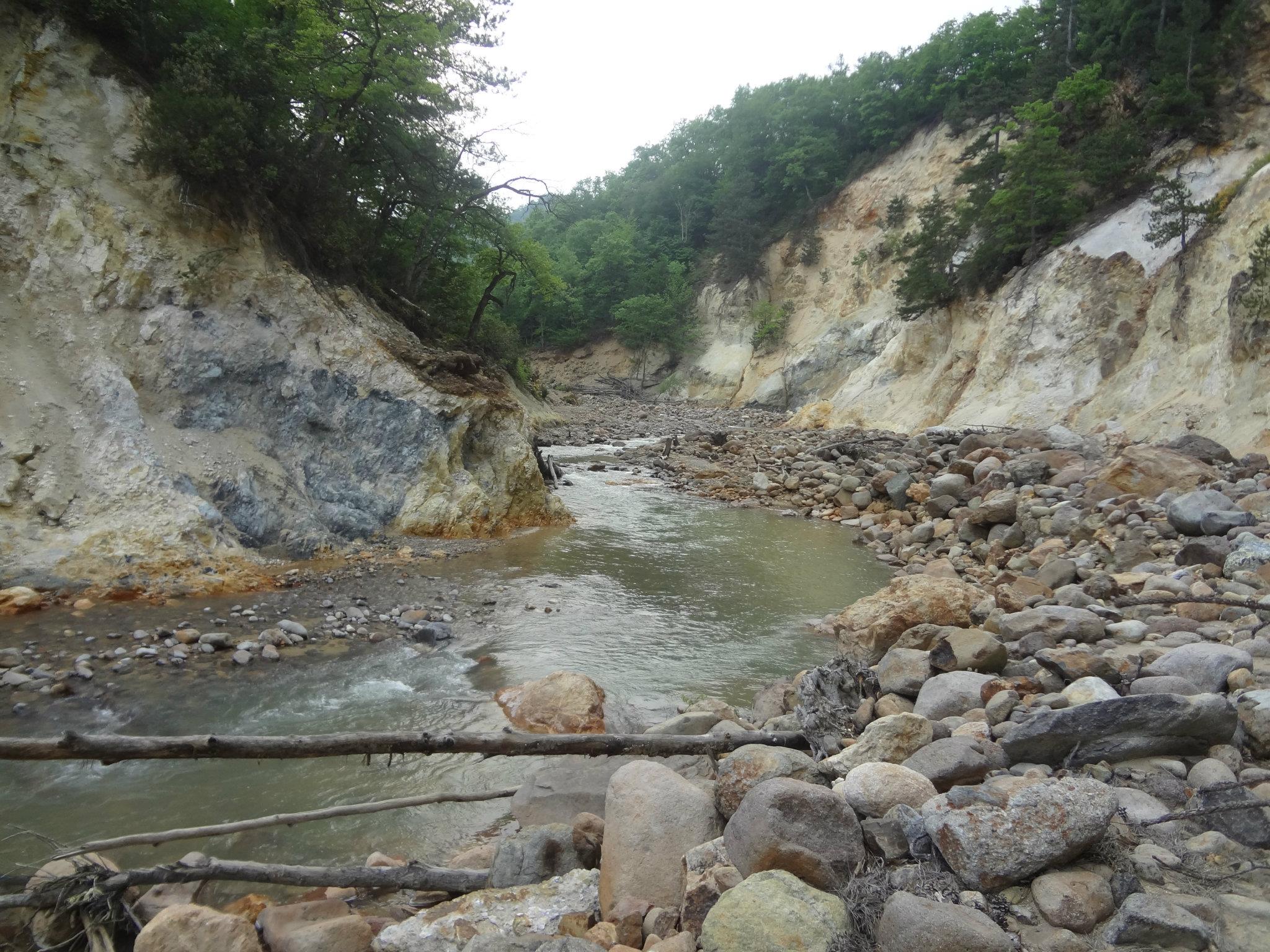 Aynı dere yatağında sürüklenmiş taşlar ve ağaçlar