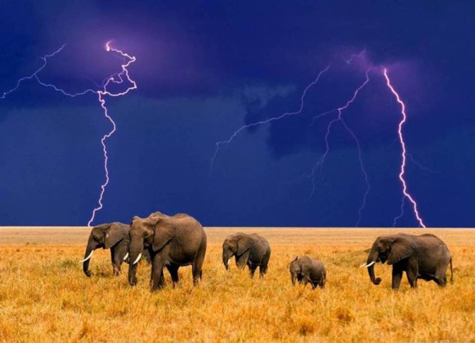 fond d ecran elephants dans un orage. Storm wallpaper with elephants.